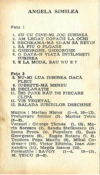 Angela Similea - Balada Iubirilor Deschise , (Casetă Audio)