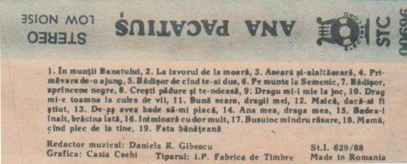 Ana Pacatiuș - Pe Munte La Semenic , (Casetă Audio)